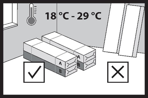 Підлога повинна зберігатися в оригінальній УПАКОВЦІ в приміщенні, де вона буде укла-дена, протягом щонайменше 24 годин, щоб забезпечити її акліматизацію. Температура повітря повинна бути від +18°C до +29°C.