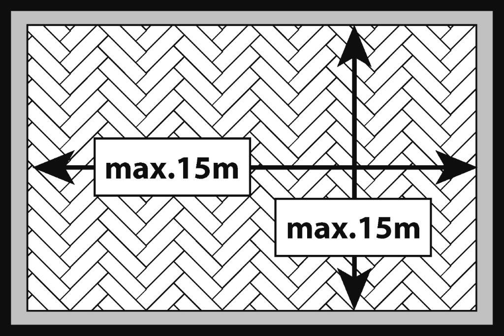 Максимальні розміри плану поверху будин-ку/квартири, при яких підлога SPC, укладена плаваючим способом, не вимагає дилатації в дверних проходах, становлять 15 м × 15 м. При розмірах до 15 м × 15 м ми не робимо дилатаційних швів у дверях, проходах до сусідніх кімнат. Ми робимо дилатаційні шви навколо стін