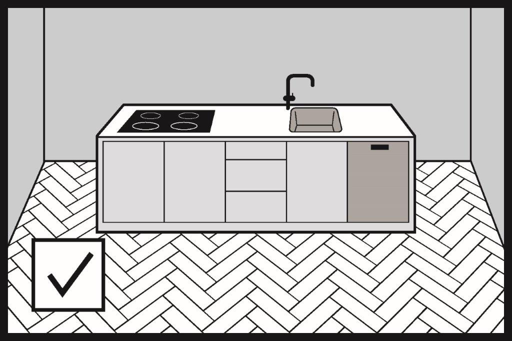 На підлозі, укладеній плаваючим або клейо-вим способом, можна встановлювати важкі предмети, такі як кухонний острів, меблі, без необхідності виконання дилатації навколо них..