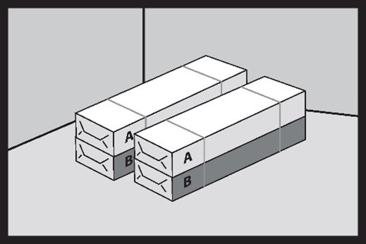 Кожен дубль-пакет для монтажу класичної ялинки містить дві пачки панелей: праві пачки з маркуванням на пачці літерою «A» та ліві пачки з маркуванням на пачці літерою «B».