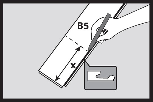 На останній панелі (в даному випадку B5) відміряємо відстань X, зменшену на Ширину дилатації 10 мм.