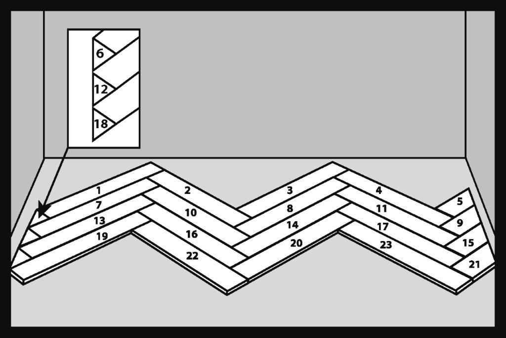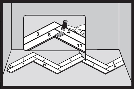 Home » Монтаж » Монтаж вінілових підлог » Інструкції » Як укладати вінілові панелі SPC без інтегрованої підкладки у візерунок ялинки? Монтаж вінілових панелей (колекції: Forma, Idea)