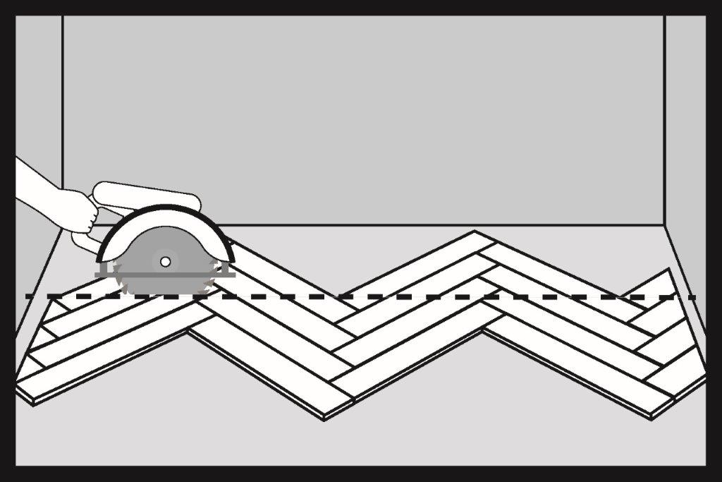 Електричною пилкою з регульованою глибиною різання розрізаємо встановлені панелі SPC.