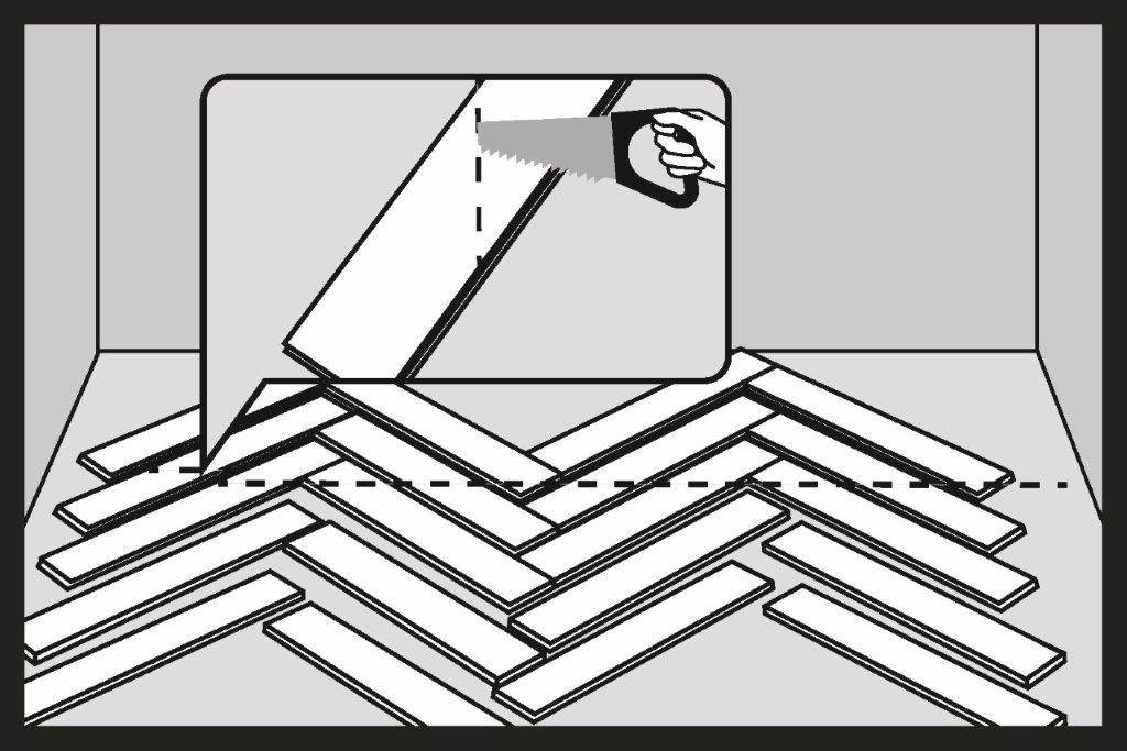 За допомогою ручної або механічної пилки розрізаємо панель SPC.