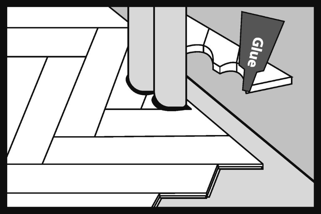 Для приклеювання підлоги слід використовувати рекомендовану клейову систему.