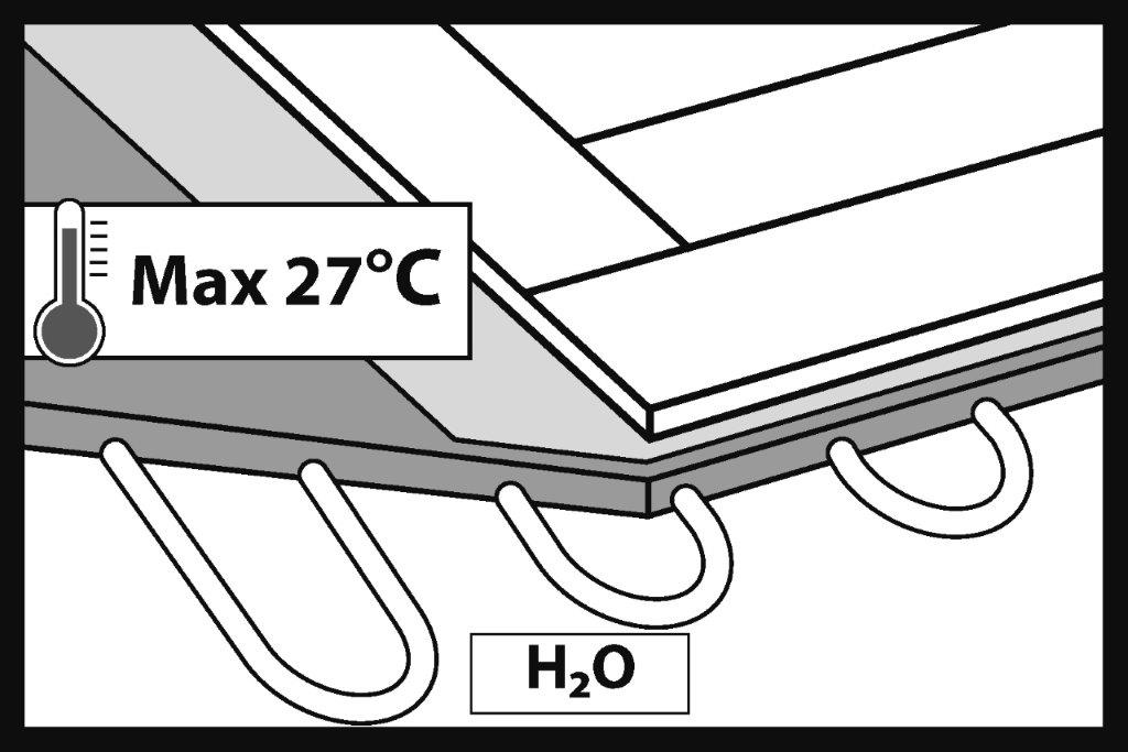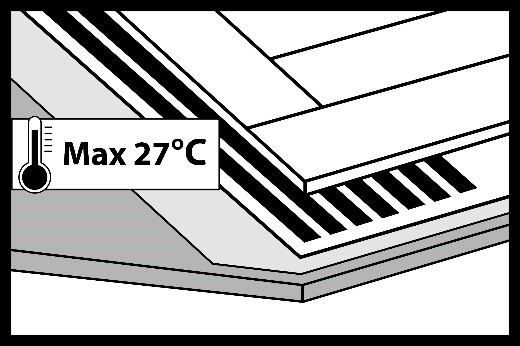 Межа, вище якої не слід встановлювати опалення, становить 27 °C на Поверхні панелей.