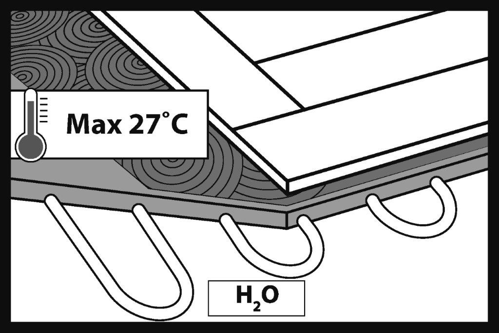 Система підлогового охолодження повинна бути захищена від зниження температури води в системі нижче +18°C.