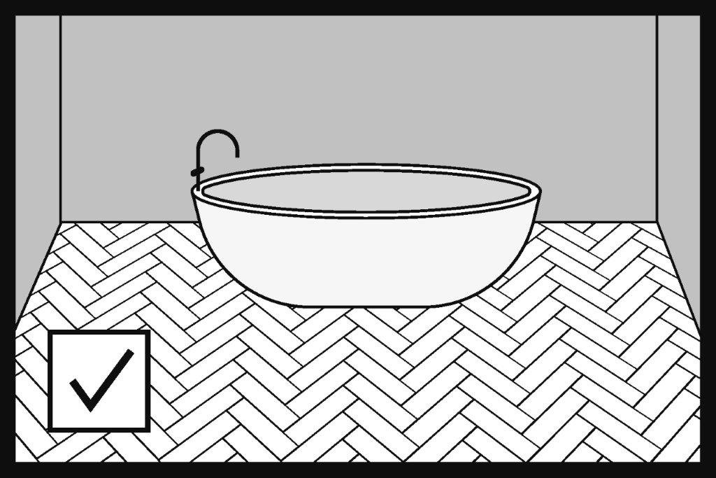 Розширювальний шов обов’язково слід застосовувати навколо стін, огорож душових кабін, ванн, унітазів та інших перешкод, які назавжди прикріплені до підлоги.