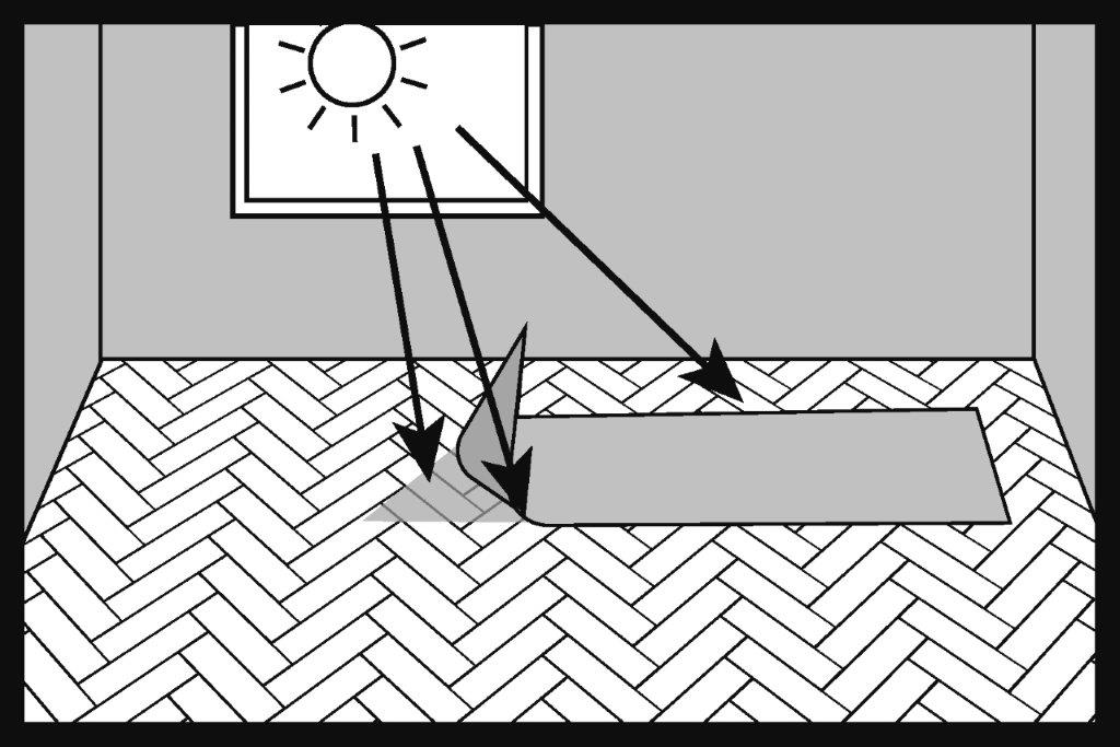 Підлога, що піддається впливу сонячних променів (УФ-світла), змінить свій первісний колір.