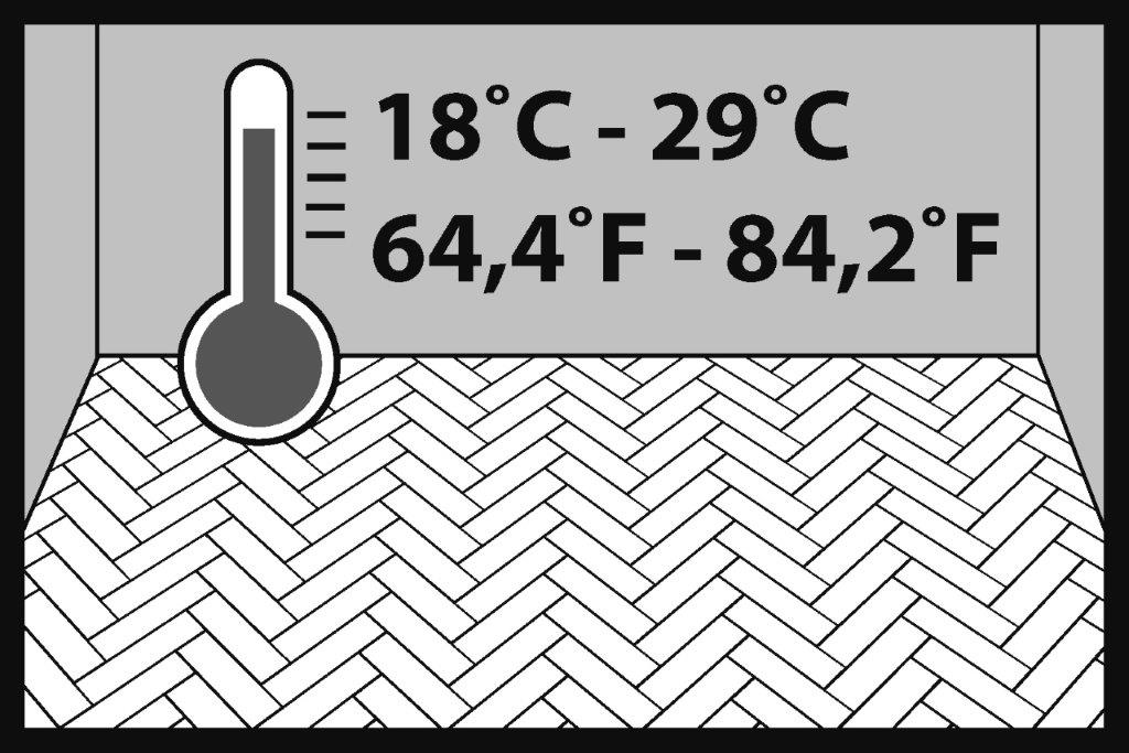 Під час використання підлоги температура в приміщенні повинна становити від +18°C до +29°C.