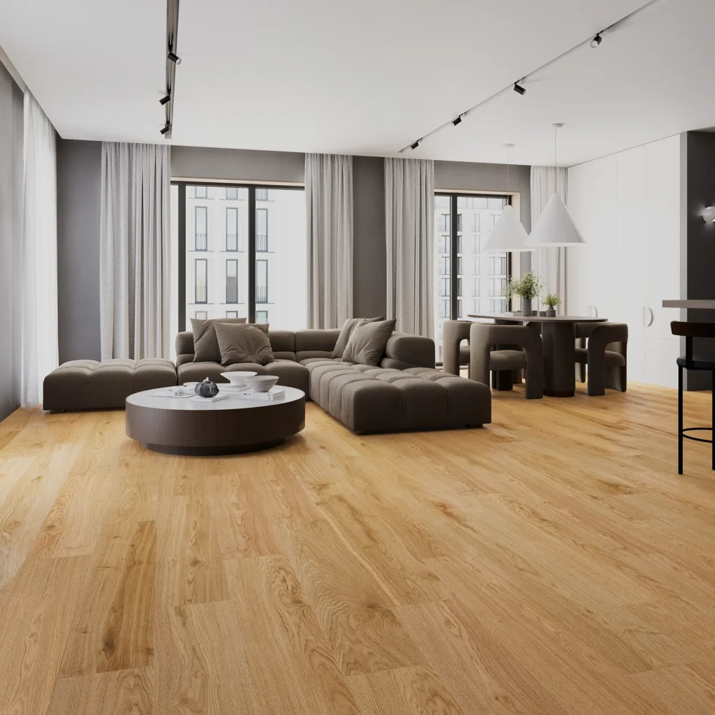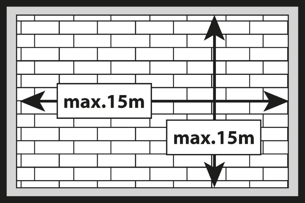 Максимальні розміри поверху будинку або квартири, за яких підлога SPC, укладена плаваючим методом, не потребує компенсаційних швів у дверних проходах, становлять 15×15 м.