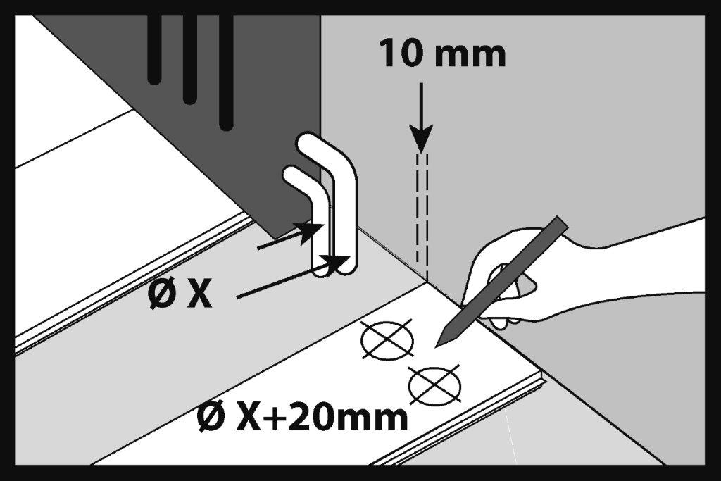 Біля труб від радіаторів у панелі SPC потрібно намалювати отвори діаметром на 20 мм більші, ніж діаметр труб.