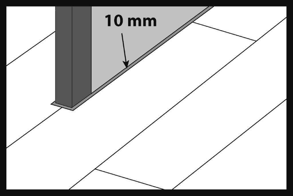 Монтаж починаємо з лівого боку стіни та продовжуємо в правий бік. Розмір компенсаційного зазору повинен становити щонайменше 10 мм. Для дотримання такого розміру зазору зручно використовувати компенсаційні клини.