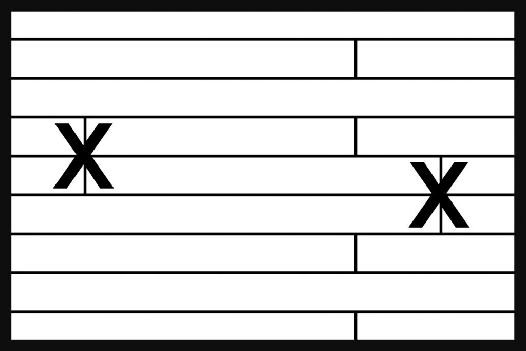 Натуральний вигляд підлоги можна досягти, чергуючи дошки різної довжини в одному ряді підлоги. Мінімально рекомендоване зміщення з’єднань на коротких краях панелей SPC у сусідніх рядах підлоги повинно перевищувати 200 мм.