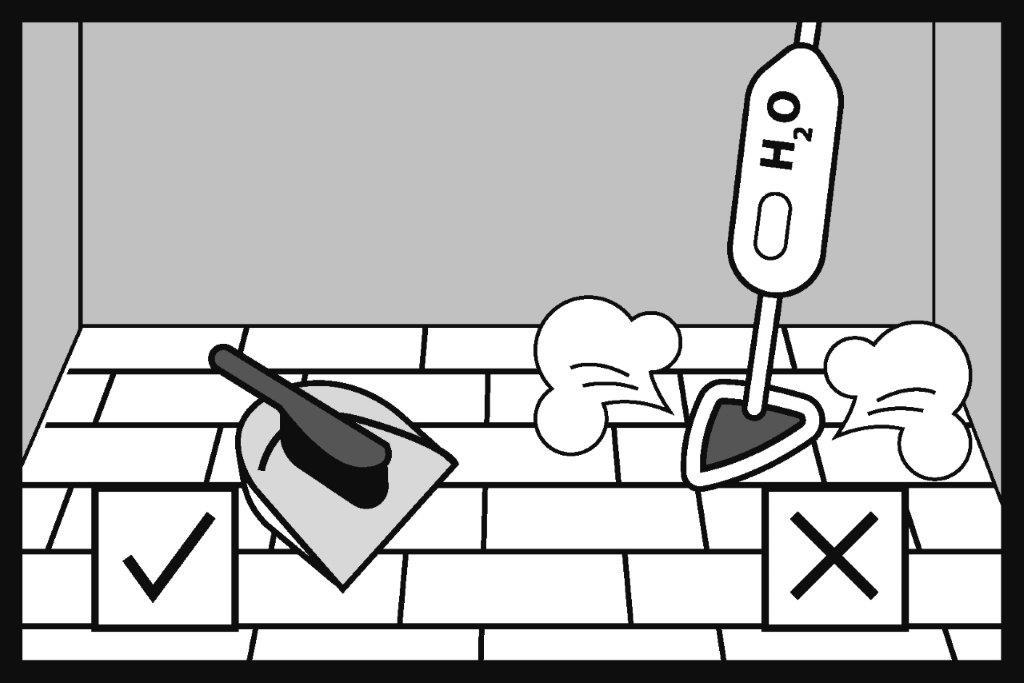 У входах до приміщення слід розмістити килимки, щоб ефективно запобігати занесенню піску, бруду та води на взутті. Захищайте підлогу, використовуючи килимки зовні та/або всередині всіх входів. Килимки допомагатимуть збирати бруд, пісок, дрібні камінці та інші тверді частки, а також вбиратимуть вологу.