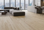 1-смугові дошки забарвленні у відтінок попелу, з підкресленою за допомогою брашування натуральною структурою деревини. Покрито матовим лаком.