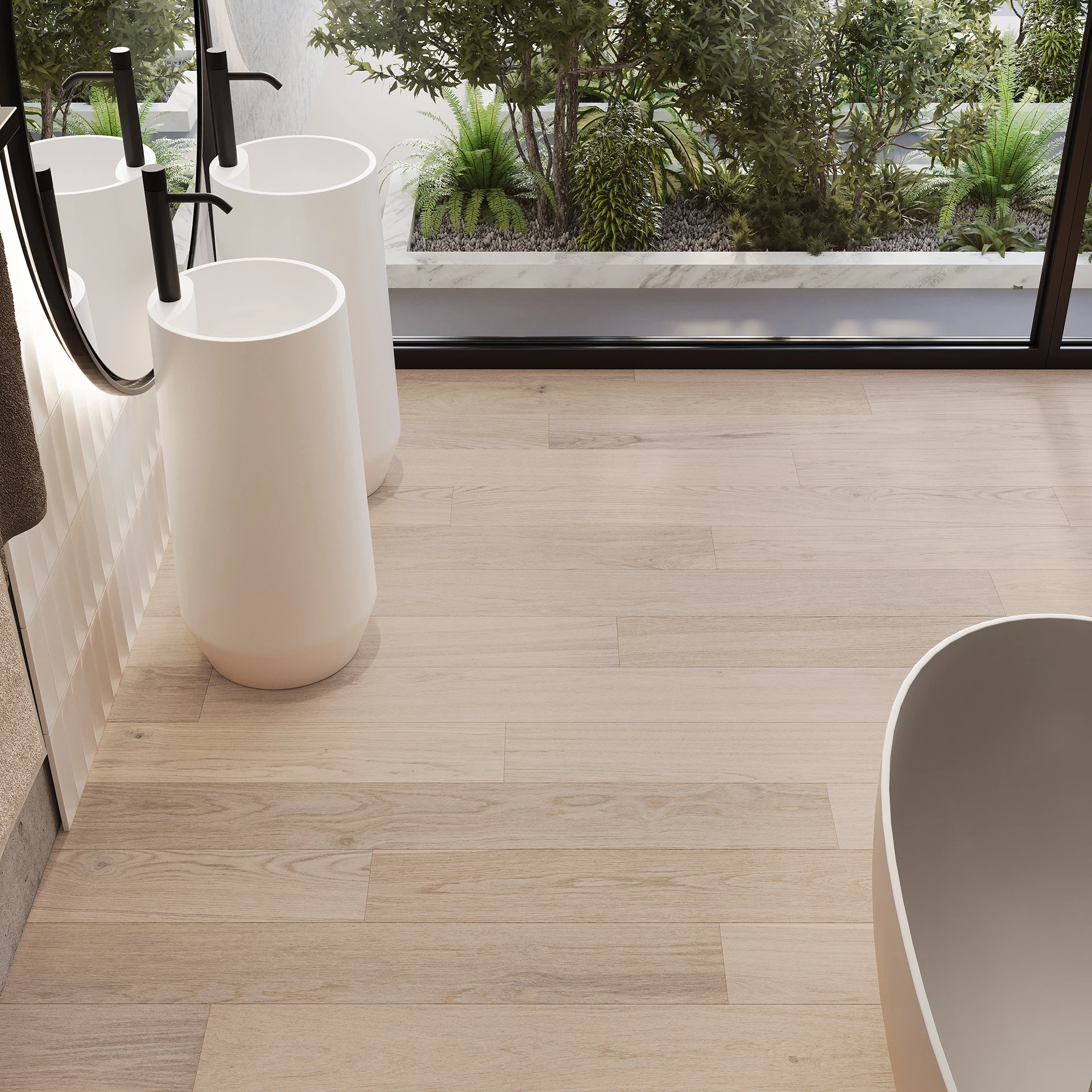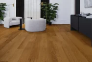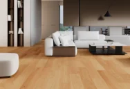 Білена дубова підлога, що поєднує міцність і позачасовий стиль. Щітковані дошки підкреслюють природну структуру деревини, надаючи поверхні глибини та виразного характеру.